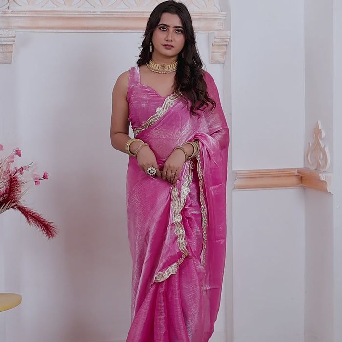 Bring home timeless elegance with this Elegant Rani Pink Designer Silk Saree, crafted from premium soft silk fabric that offers a smooth texture and graceful fall. The vibrant rani pink shade adds a youthful charm, making this saree a perfect blend of tradition and modern sophistication.