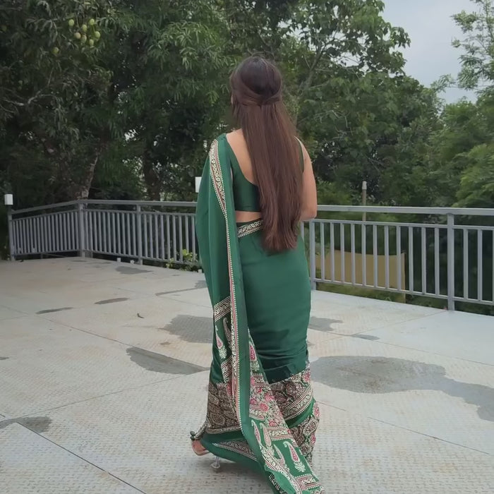 Green Ajrakh Digital Print Saree – Elegant Soft Silk Designer Wear