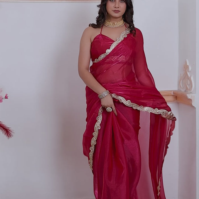 Step into timeless elegance with this Royal Crimson Pink Designer Silk Saree, crafted from premium soft silk fabric that offers a rich texture and graceful drape. The vibrant crimson-pink shade radiates charm and sophistication, making it an ideal choice for women who love bold yet elegant ethnic wear.
