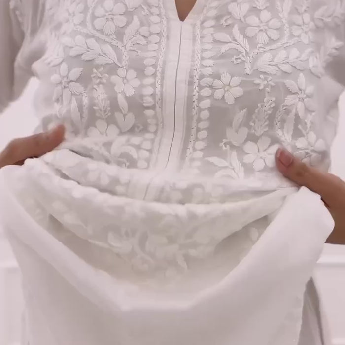 White Designer Chikankari Special Kurta With Pant Set – Vastras.in