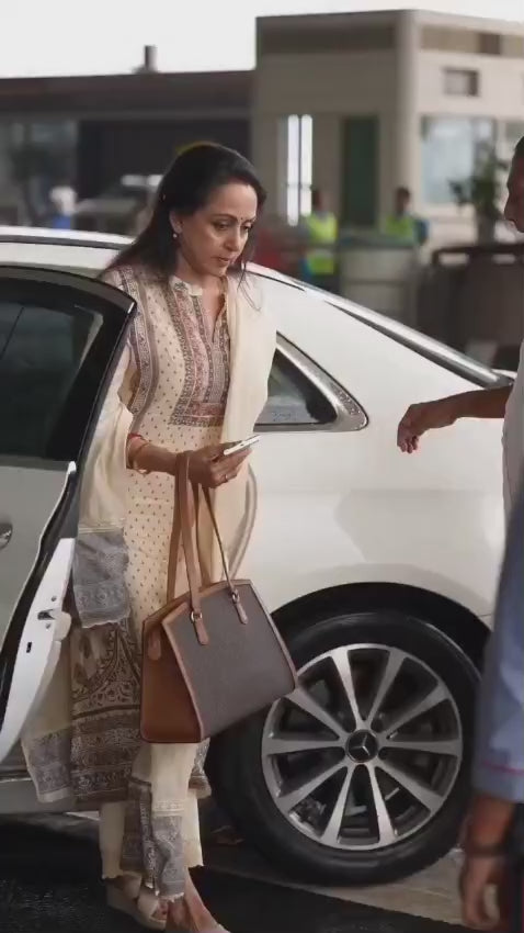 Royal Beige Heritage Print Kurti with Embroidery