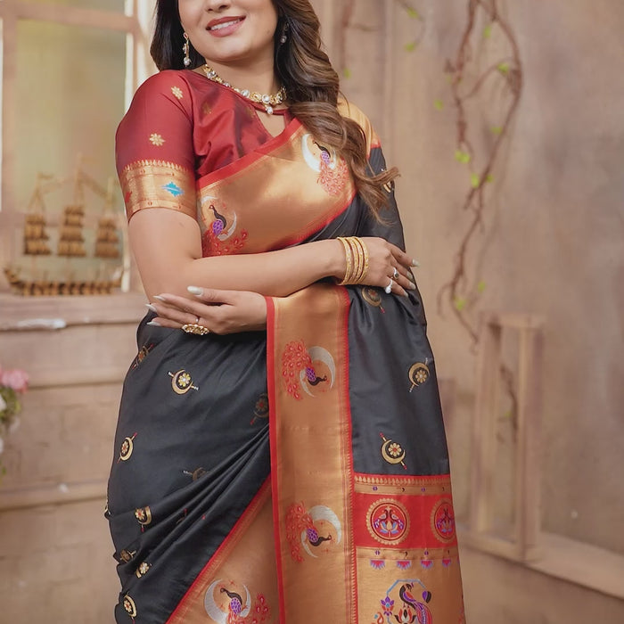 Rangmohini Black Paithani Silk Saree – Vastras.in